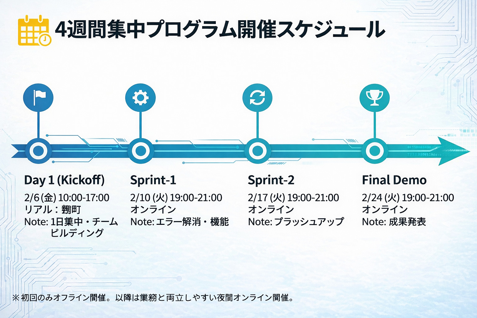 4週間で“動く形”にする実践講座